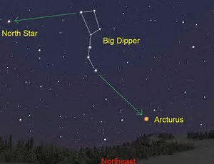 Arcturians: We are actually from Arcturus, which is a star. And if you look at the handle of the Big Dipper and follow the handle out to the end, then you go off a little bit to the right and down a bit, you will see Arcturus.