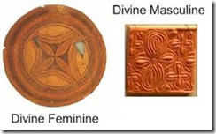 Examples of Halafian and Sumerian Ancient Pottery containing symbols of both the divine feminine and divine masculine |